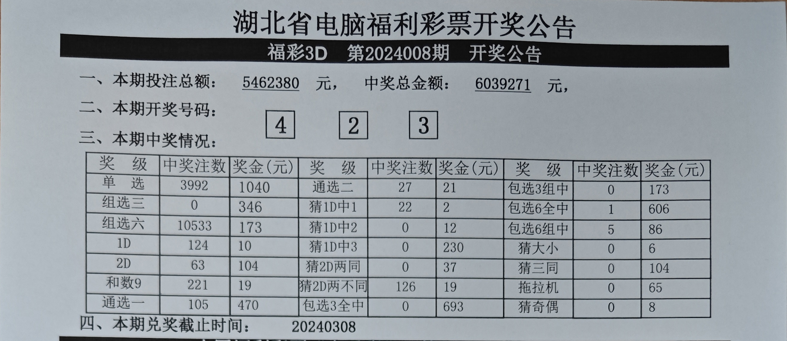 1月8日 福彩3D 开奖公告