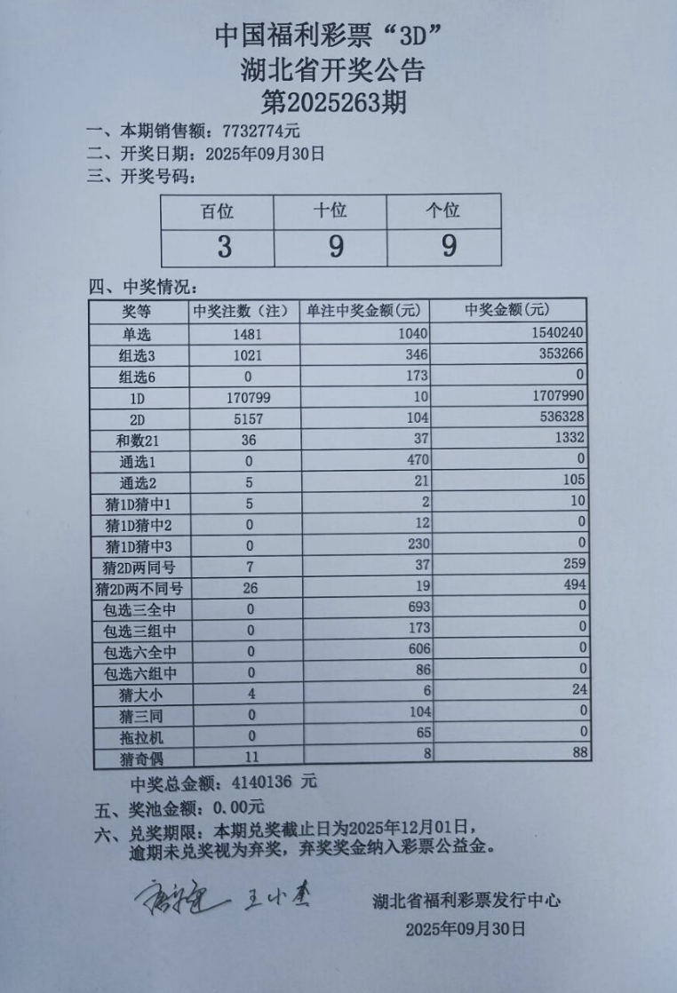 9月30日 福彩3D 开奖公告