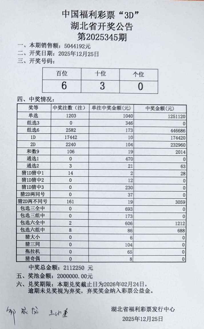 12月25日 福彩3D 开奖公告