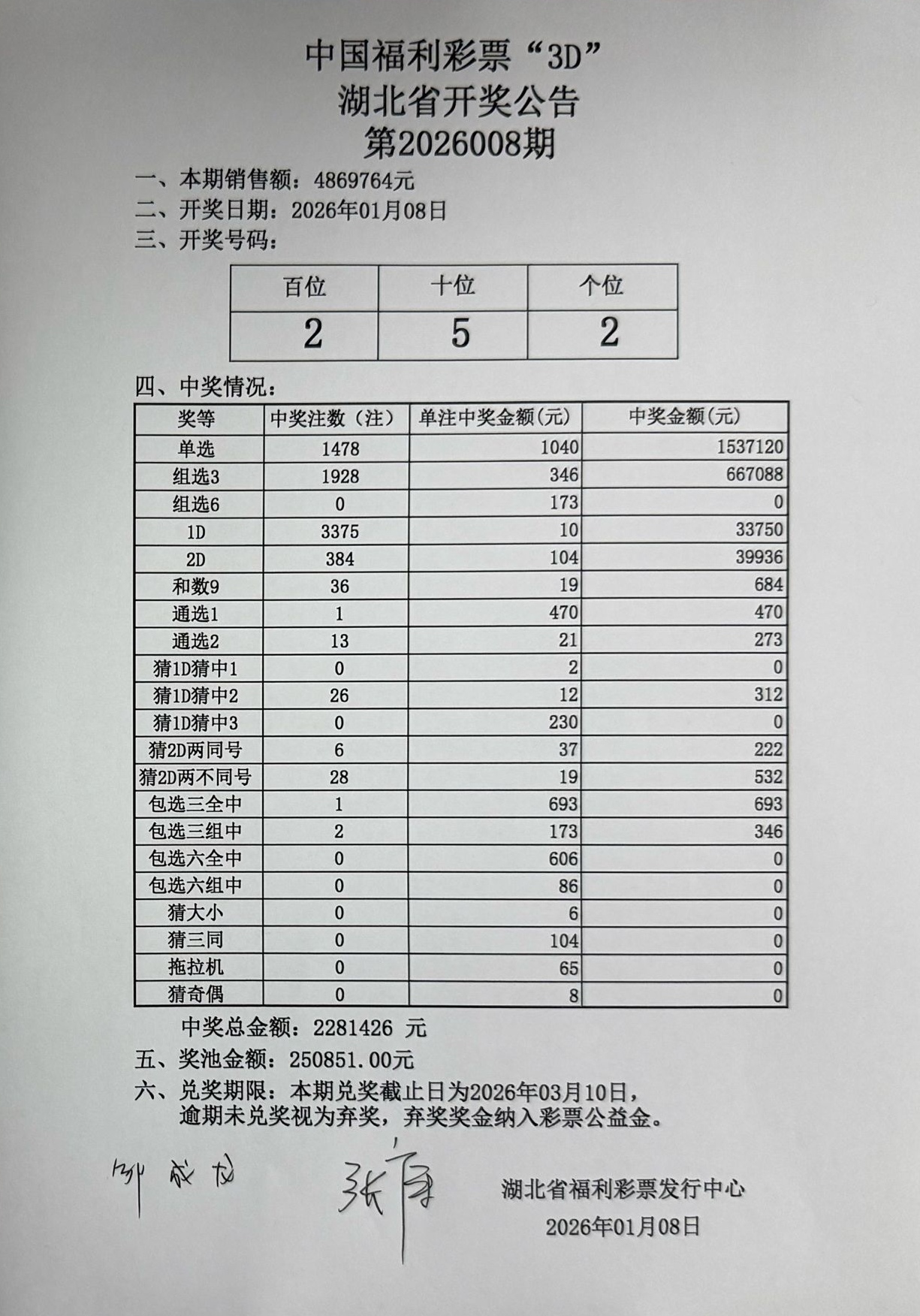 1月8日 福彩3D 开奖公告