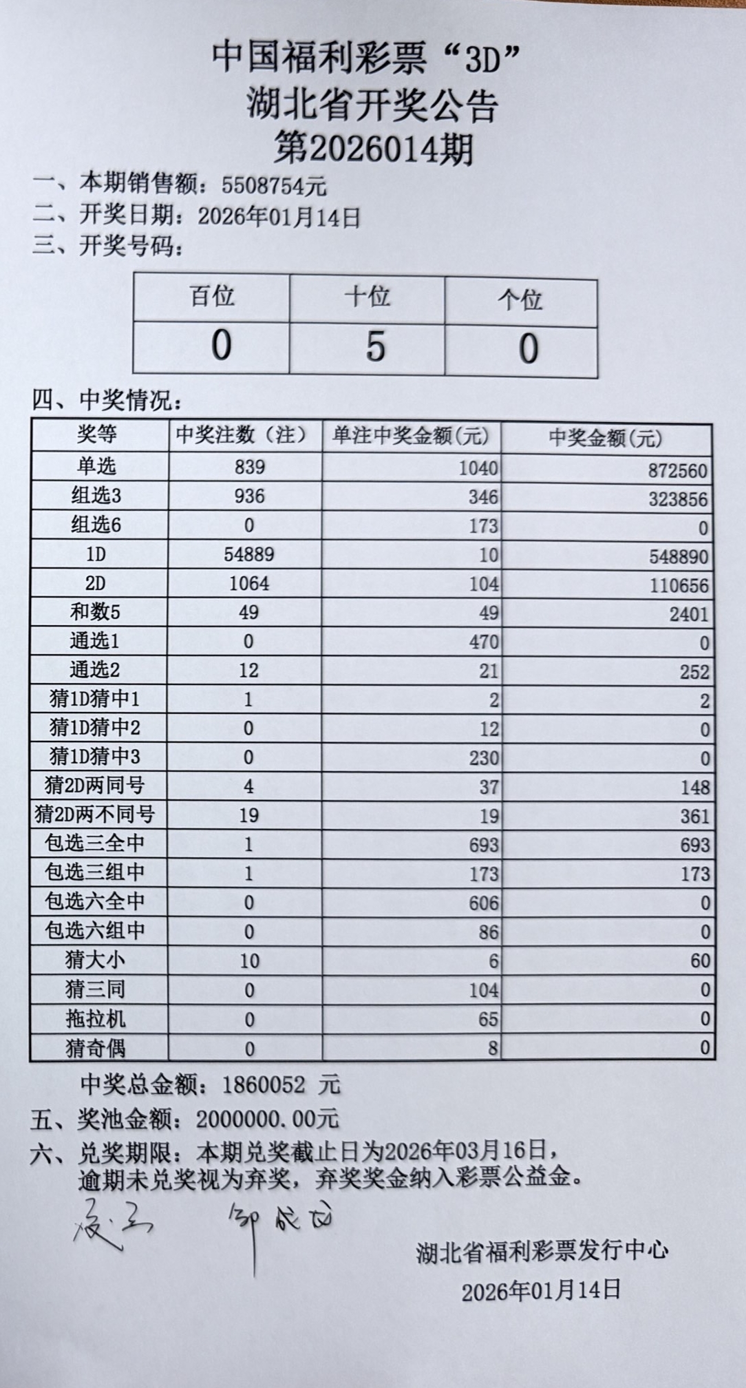 1月14日 福彩3D 开奖公告