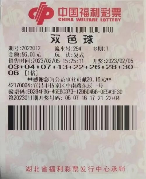 2月5日晚,福彩双色球第2023012期开出03、04、07、22、26、30+06的大奖号。当期全国共开出14注一等奖,单注奖金644万元。我省宜昌一购彩者凭借一张8+1复式票,收获其中1注。