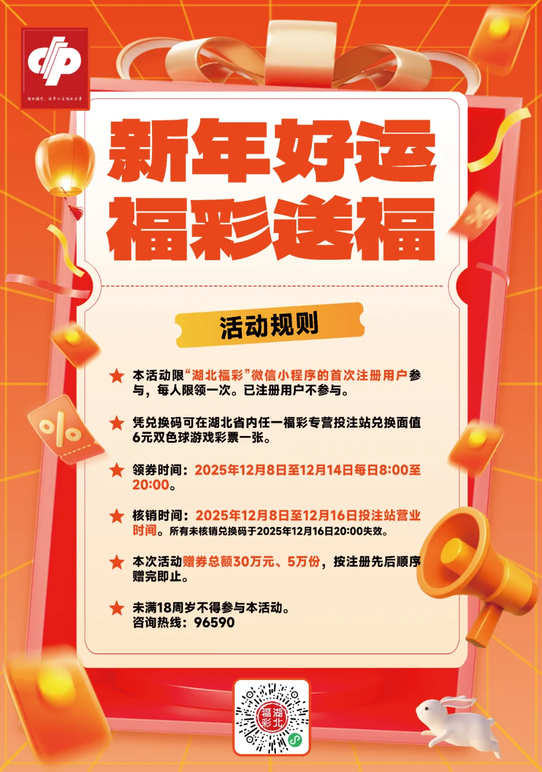 派发总额30万元、共5万份福利彩票兑换码