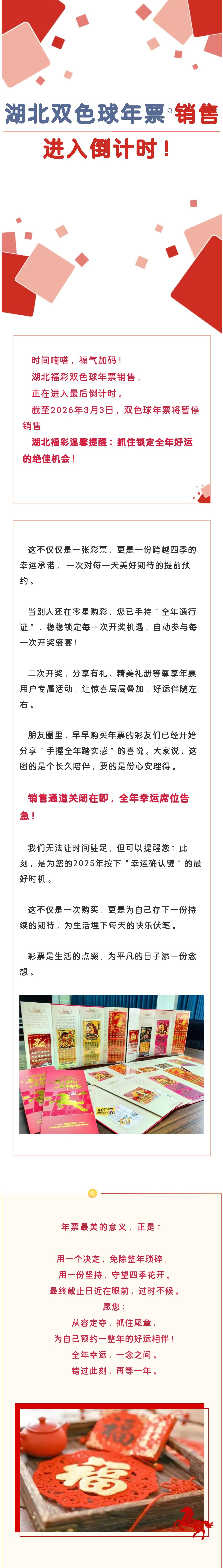 手慢无!湖北双色球年票销售进入倒计时!错过再等一年!