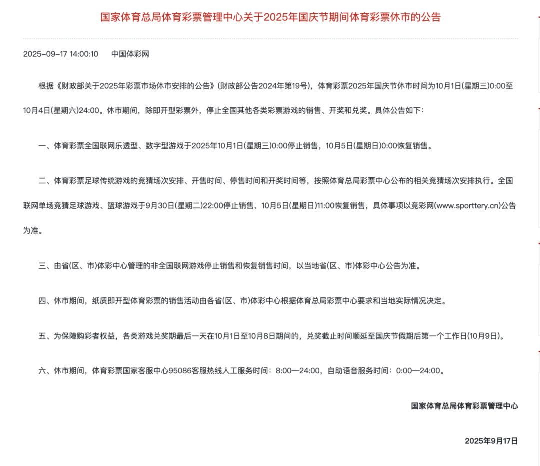 近日,国家福体彩中心相继发布了“国庆节期间彩票休市公告”,明确了十一休市期间彩票的相关工作安排。