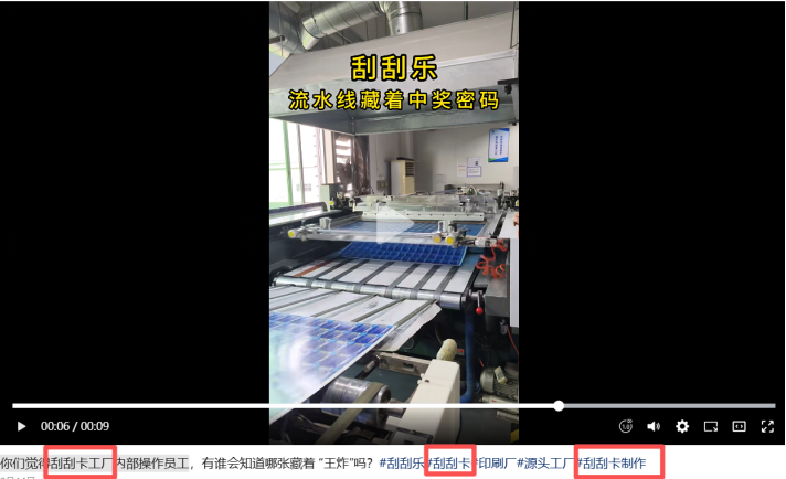 所以,那个所谓的“流水线藏着中奖密码”视频,是用商业“刮刮卡”的制作过程,来“碰瓷”国家彩票的严谨性。