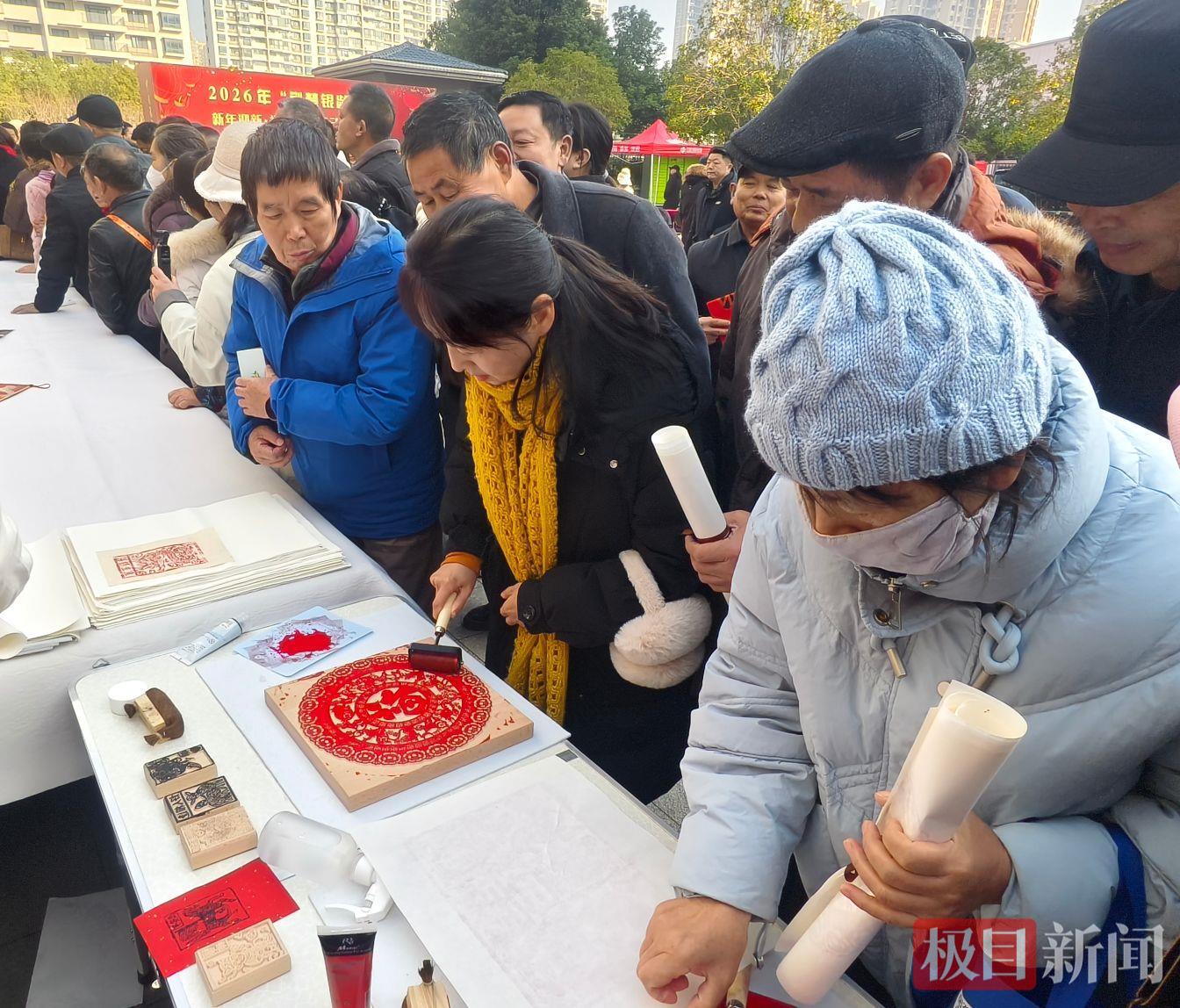 “瑞气增喜色,翰墨飘书香。”活动现场人气最旺的莫过于“写福送福”区。“中国书法是中国文化的象征,中国人最喜欢的汉字里就有‘福’字。它代表着健康、吉祥、安顺、美好。”湖北省书法院院长刘永泽边书写边介绍。活动现场,十余位书法家、社区银龄书法爱好者同台挥毫,以笔墨传递新春祝福。红纸翻飞间,一张张“福”字、一副副春联、一把把福扇陆续诞生,被居民们欣喜地捧在手中。