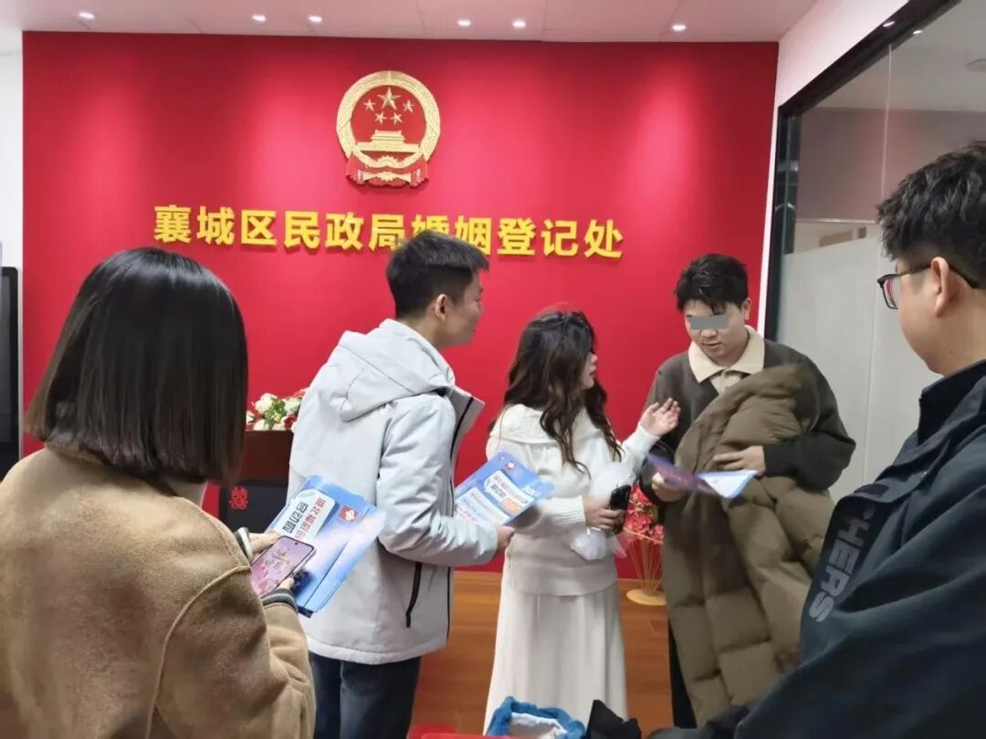 2月14日情人节,襄阳市各婚姻登记人头攒动,前来领证的青年男女络绎不绝,一派喜结连理的美好景象。