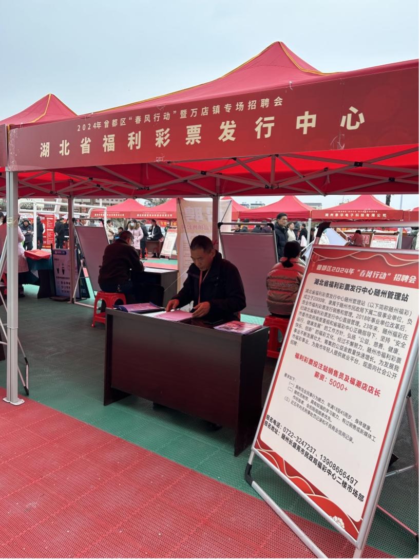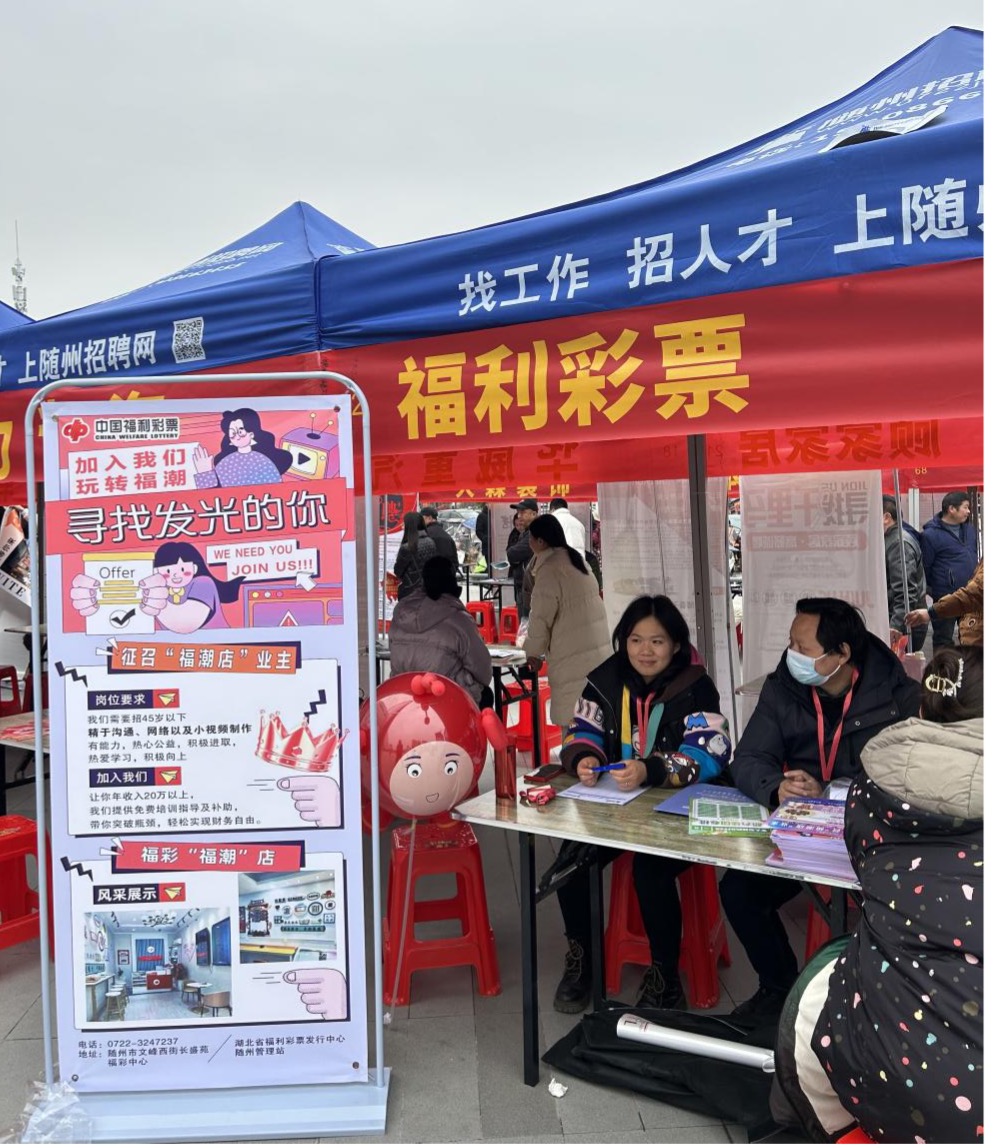 日前,随州市2024年“春风行动”暨就业援助月大型招聘会正式启动。湖北福彩随州福彩管理站积极参与两场现场招聘会,以“福彩送福,温暖相随”为主题,开展形式多样的宣传服务活动。