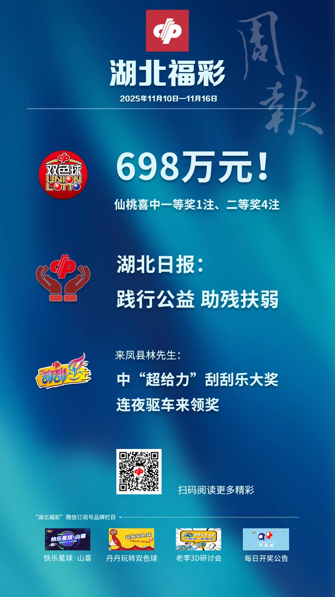 【精彩海报】湖北福彩每周要闻(2025年11月10日-2025年11月16日)