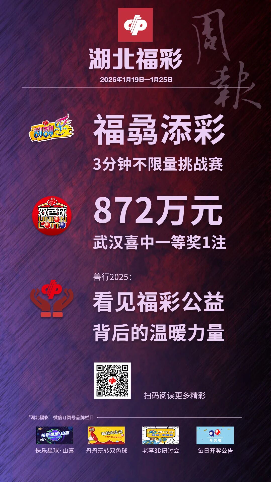 【精彩海报】湖北福彩每周要闻(2026年1月19日-2026年1月25日)