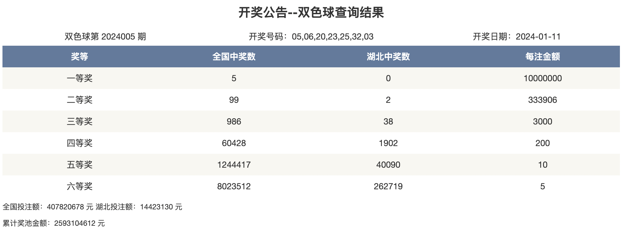 2024年1月11日 开奖公告