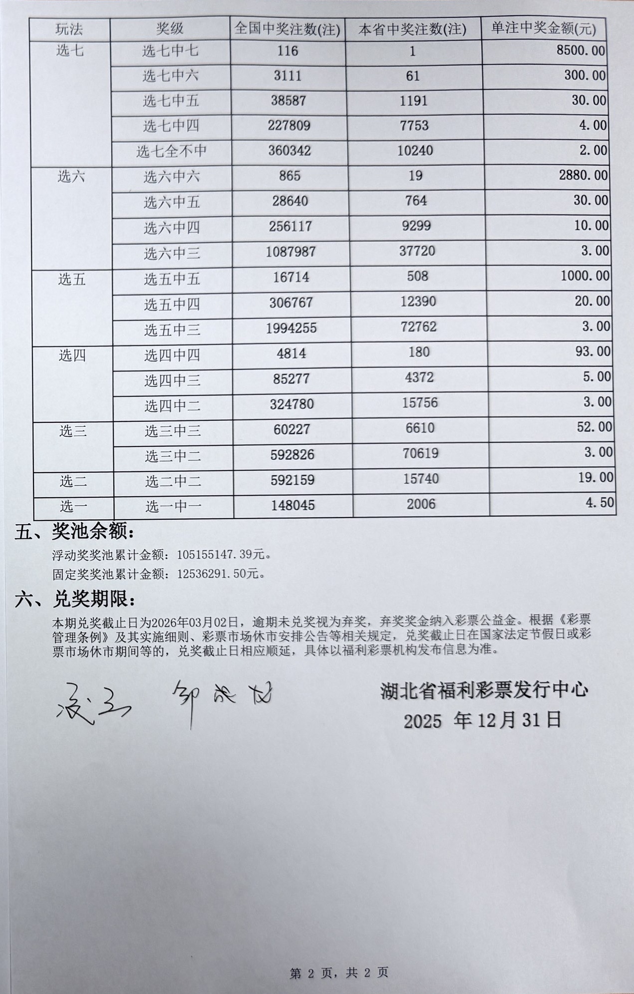 2025年12月31日 开奖公告
