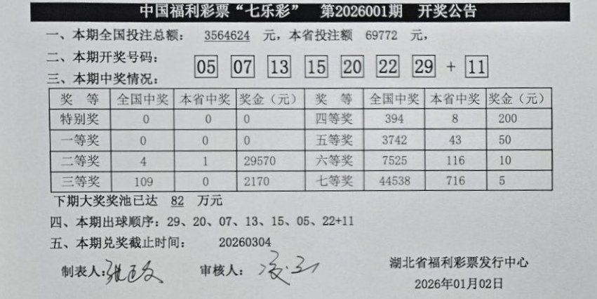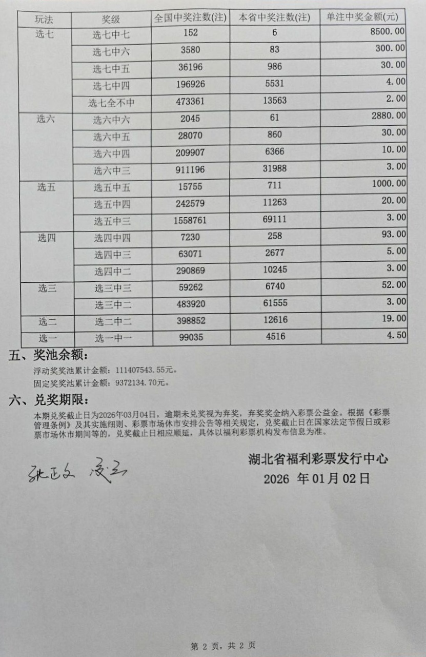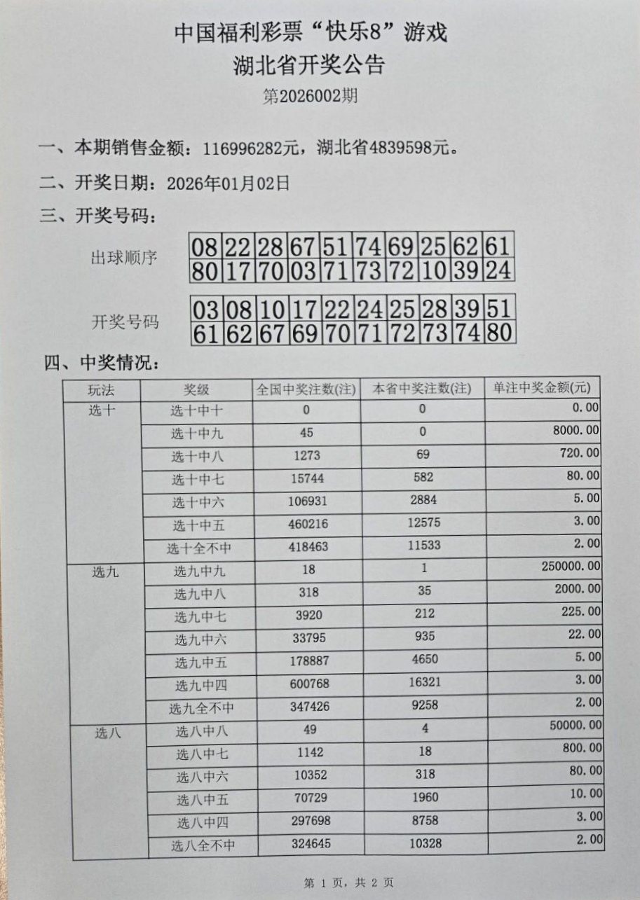 2026年1月2日 开奖公告
