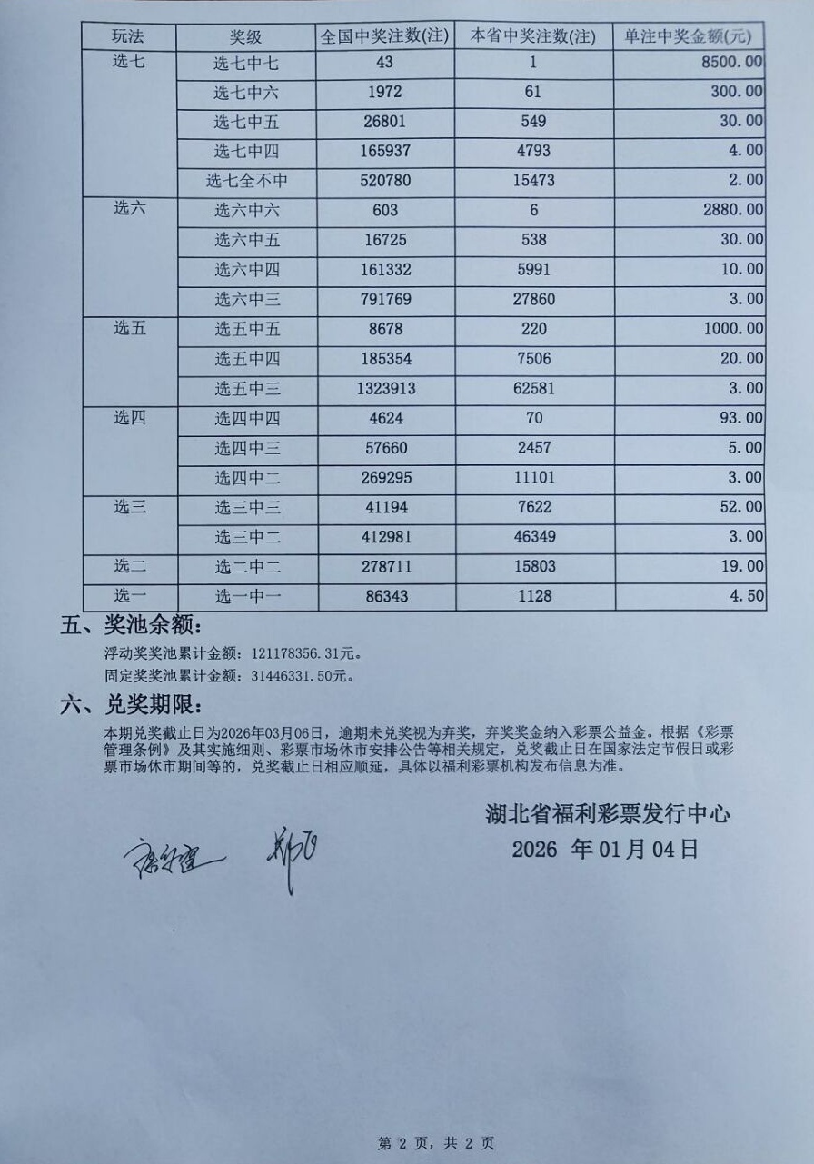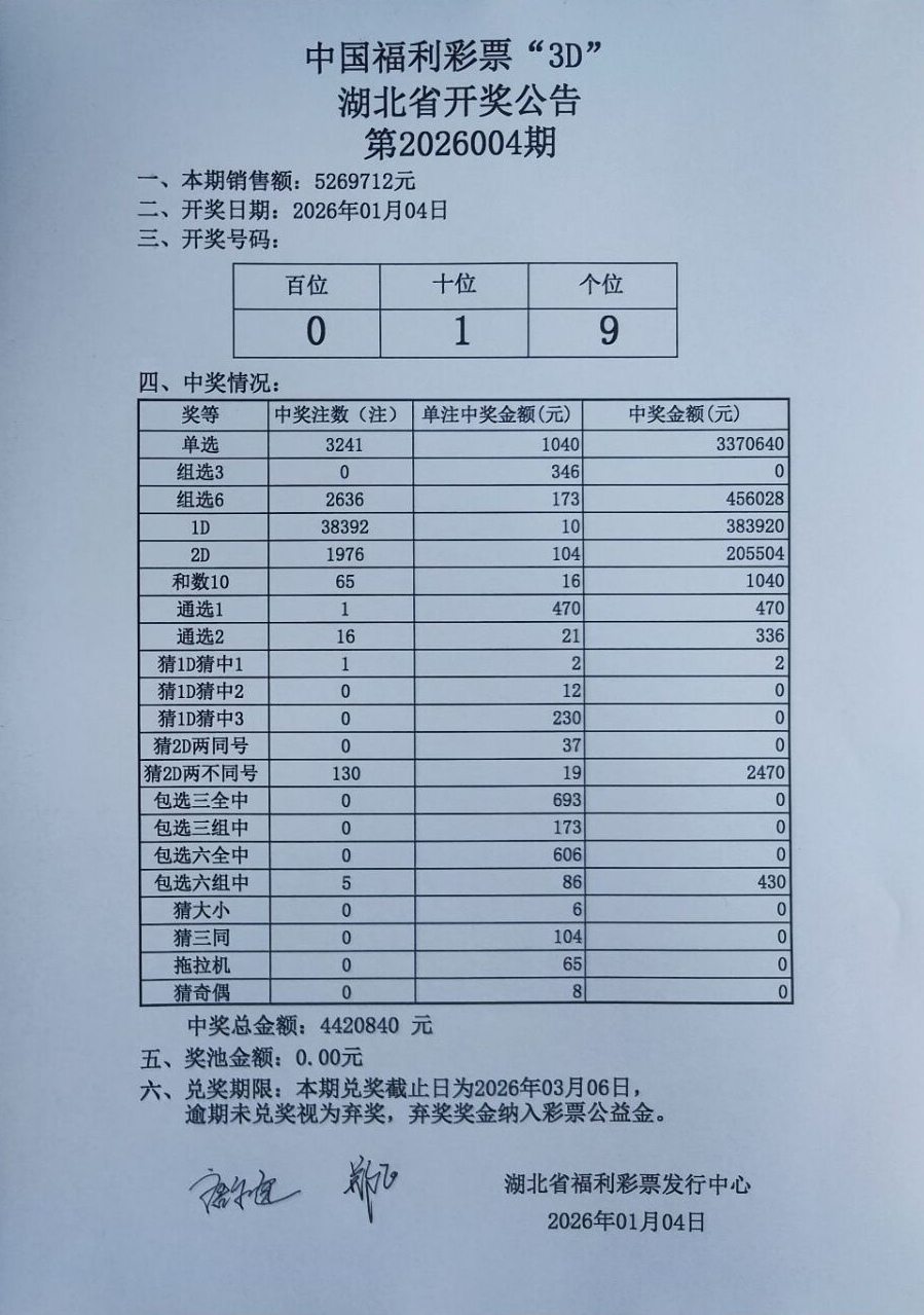 2026年1月4日 开奖公告