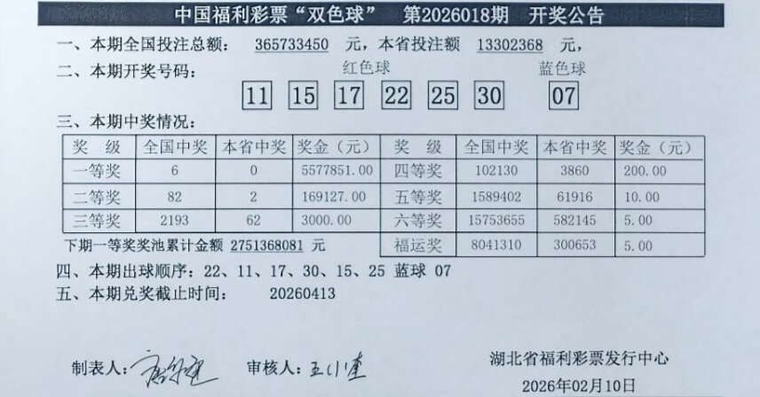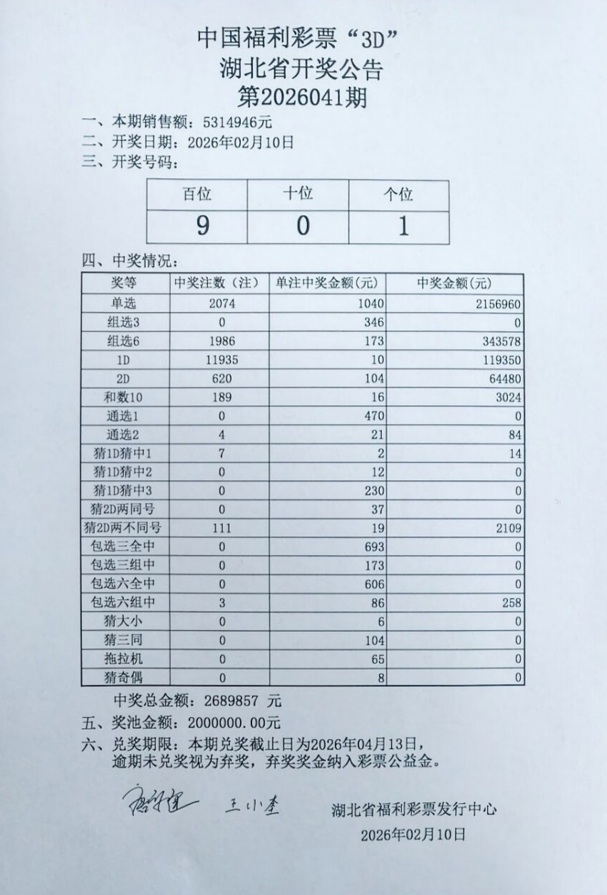 2026年2月10日 开奖公告