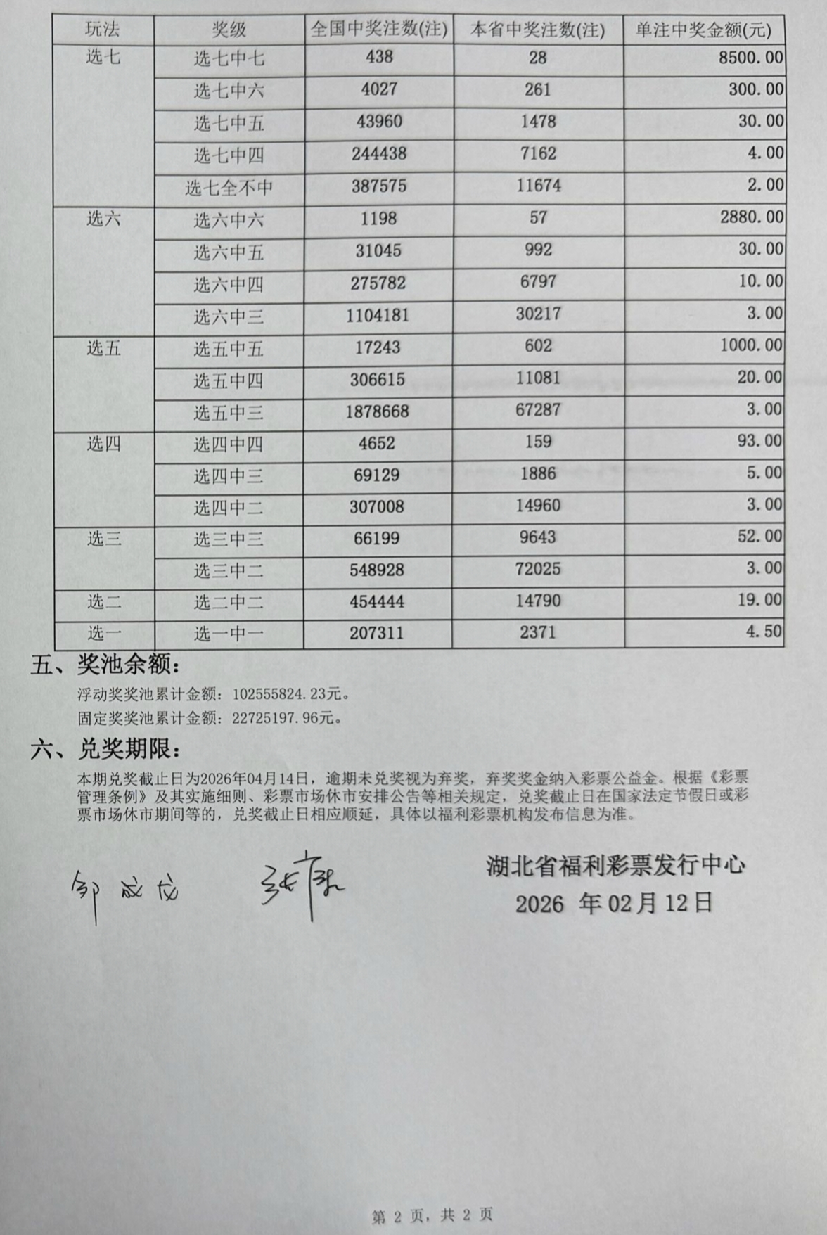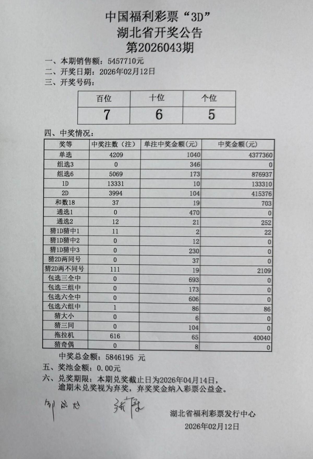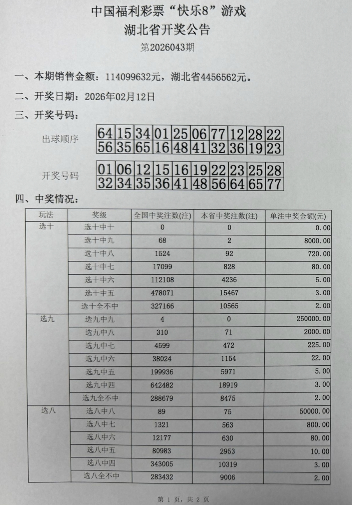 2026年2月12日 开奖公告