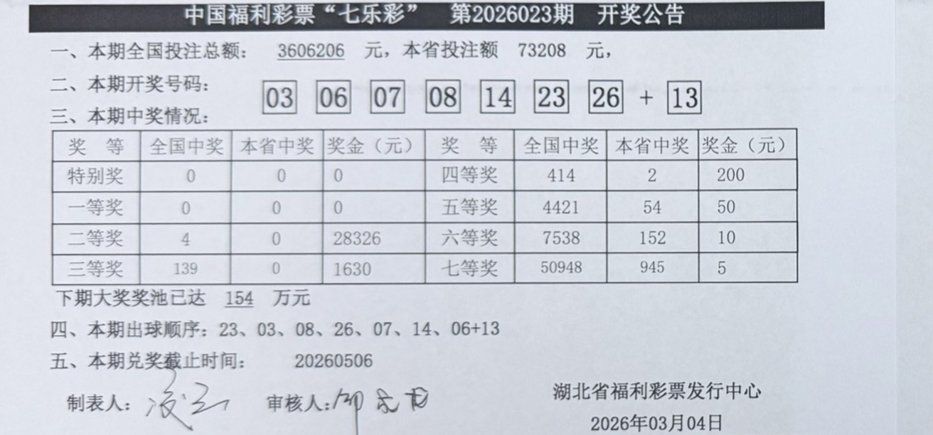 开奖公告