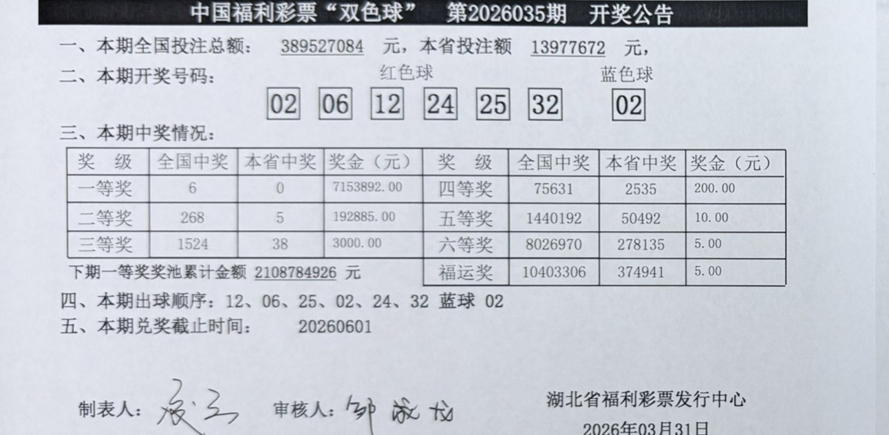 开奖公告
