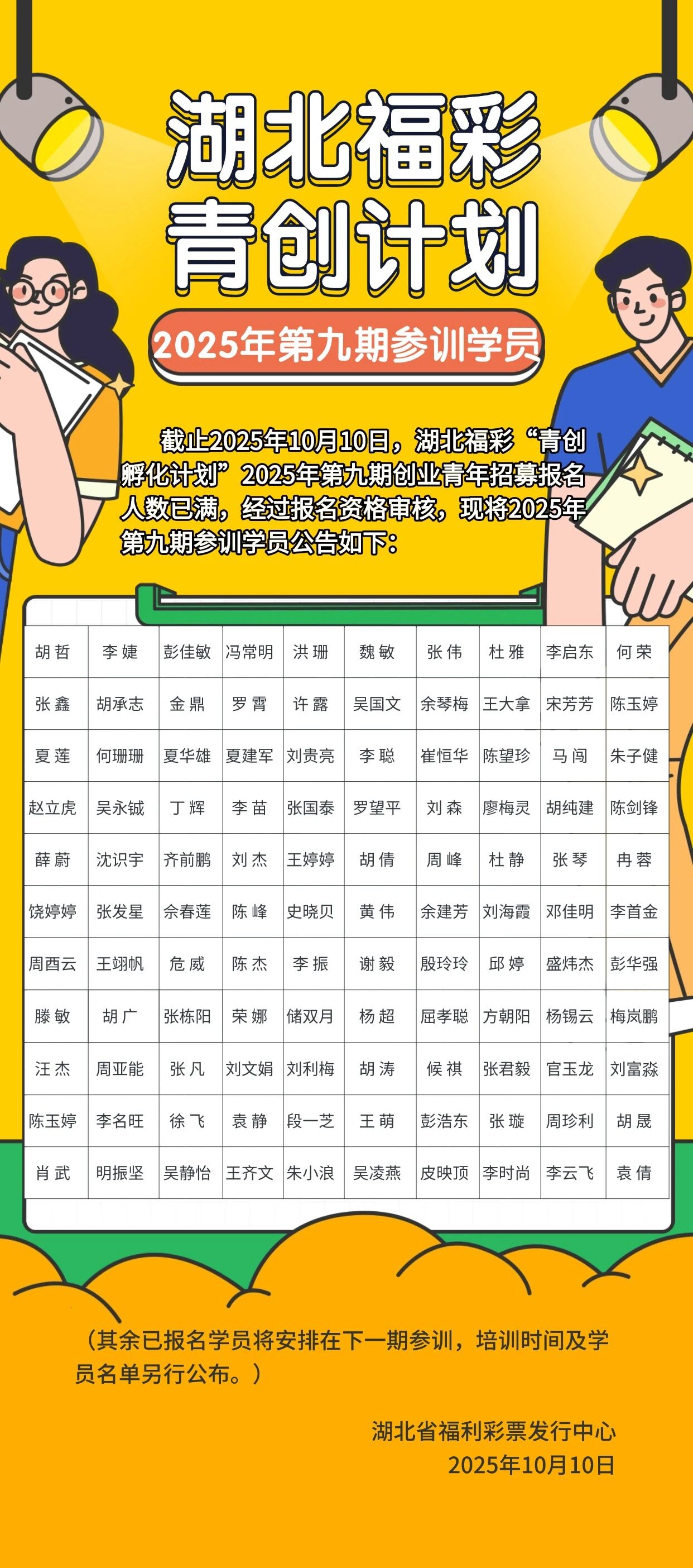 2025年湖北福彩“青创孵化计划”第九期参训学员名单公告