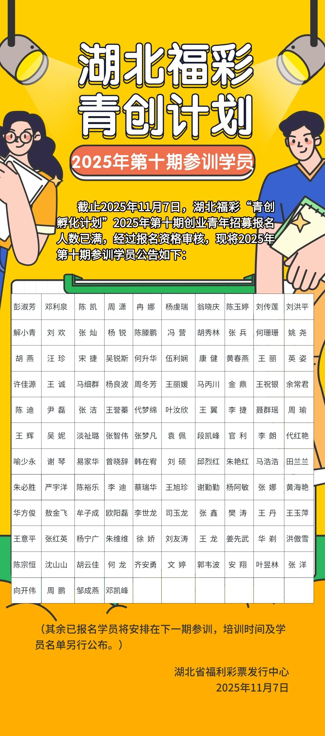 2025年湖北福彩“青创孵化计划”第十期参训学员名单公告