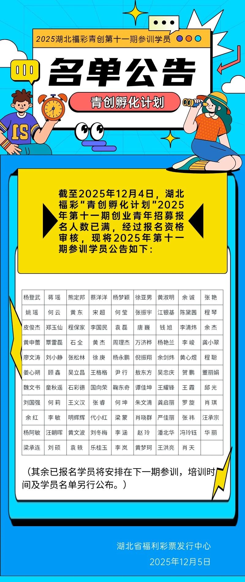2025年湖北福彩“青创孵化计划”第十期参训学员名单公告